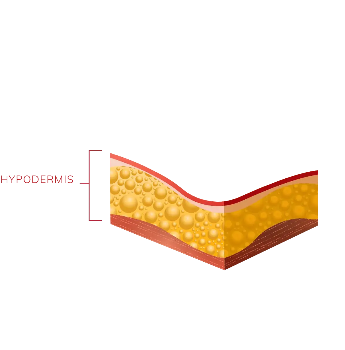 The deepest layer, made of connective tissue and fat. It cushions the body, stores energy, and insulates against temperature changes while providing structural support to the layers above.